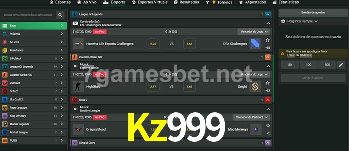 O Kz999 oferece uma grande seleção de opções de apostas em e-sports com probabilidades competitivas
